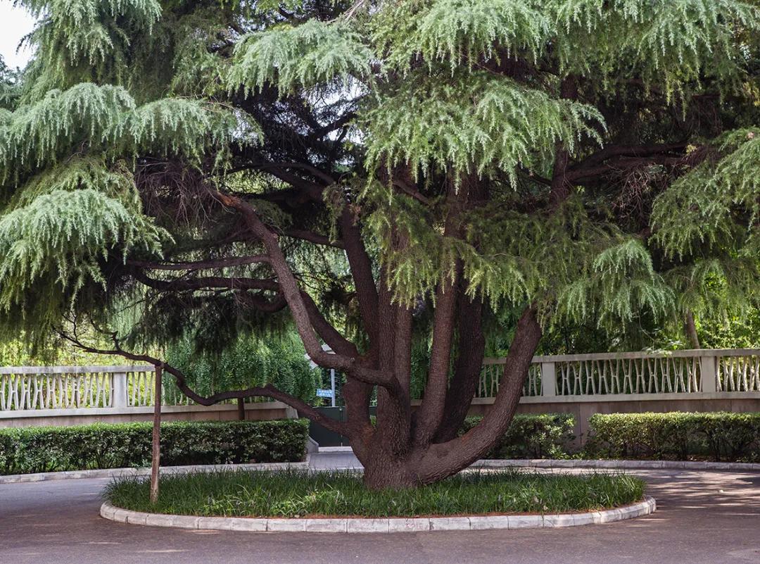 千余株雪松星罗棋布,楼宇间、大道边、林荫旁……它们千姿百态,形态各异,它们或屹立,或斜出,或弯曲;或仰,或俯,或卧;有的直入云霄,有的盘旋苍穹;有的形似体操健将,有的弯弓射大雕;有的像千手观音,有的独木成林……